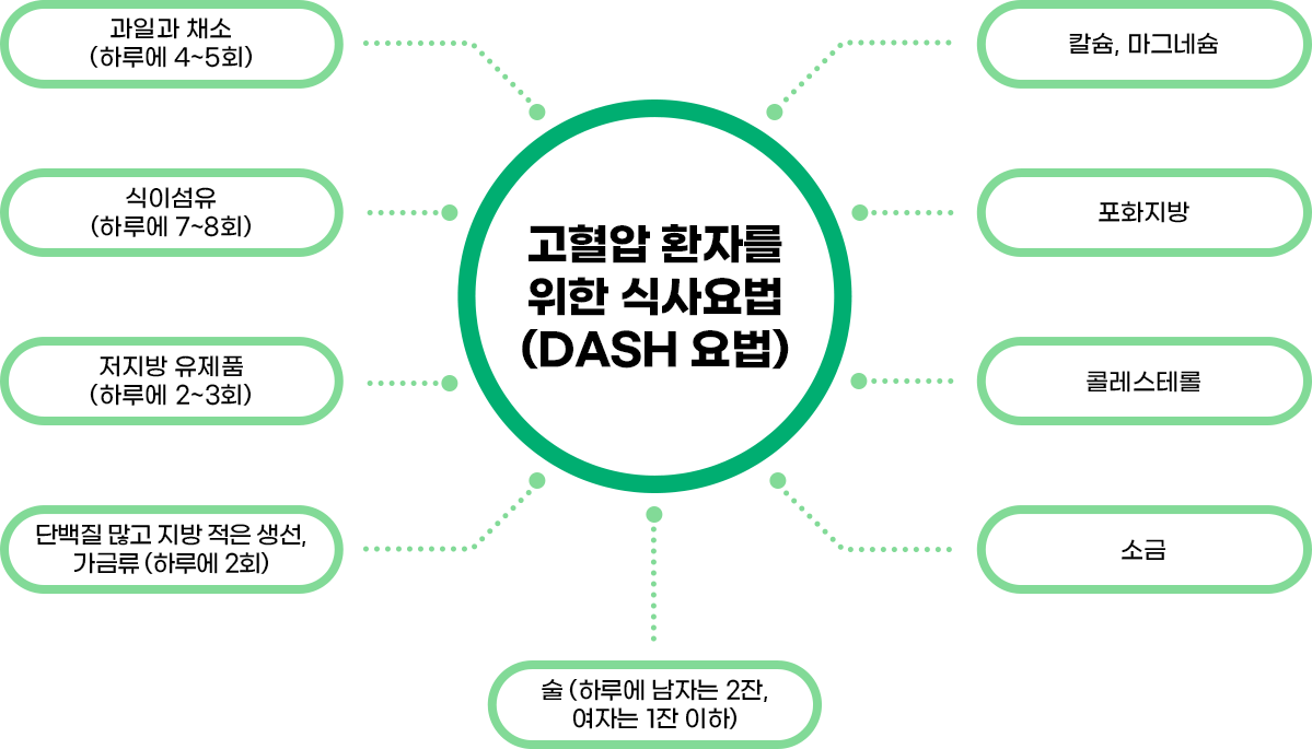 건강하고 규칙적인 식습관(염분섭취 줄이기, 과식피하기, 칼륨섭취 등)